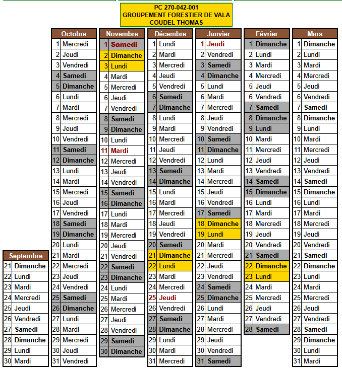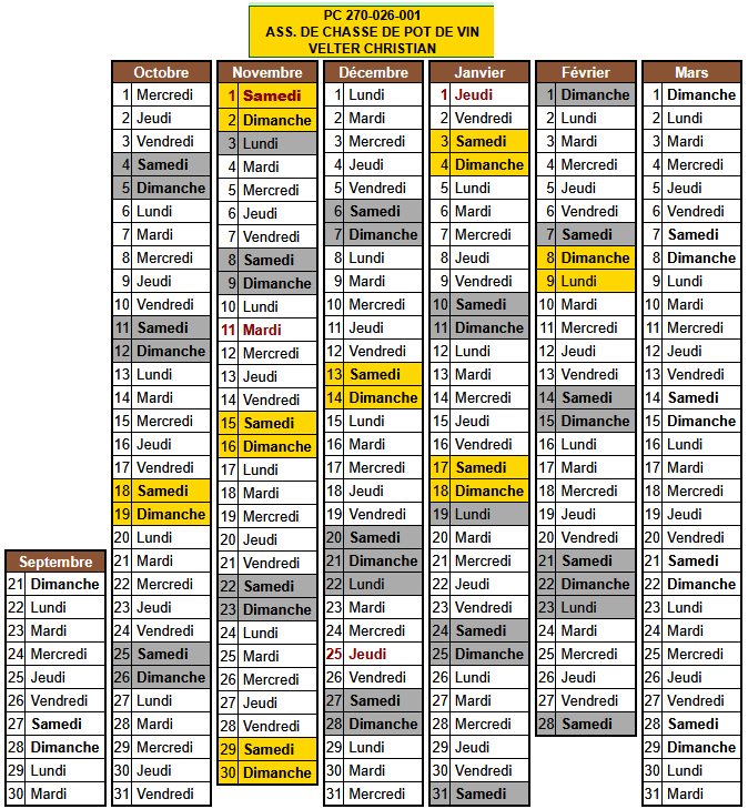 Les calendriers de chasse sont consultables à l’adresse suivante : http://5.42.200.243/calendrier en sélectionnant le secteur 27 et la commune. Ci-dessus les calendriers actuellement déclarés.