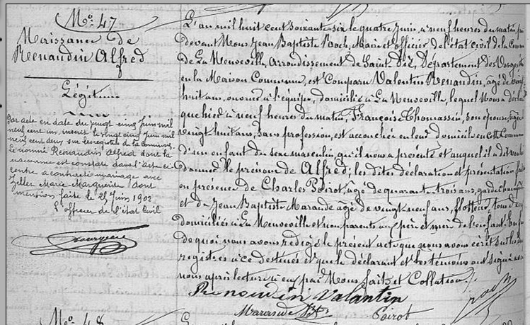 Acte de naissance d'Alfred Renaudin