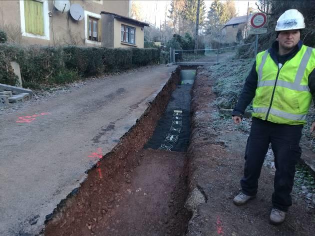 Vue sur un tronçon en cours de remblaiement