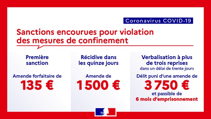 Sanctions encourues en cas de non respect des mesures de confinement