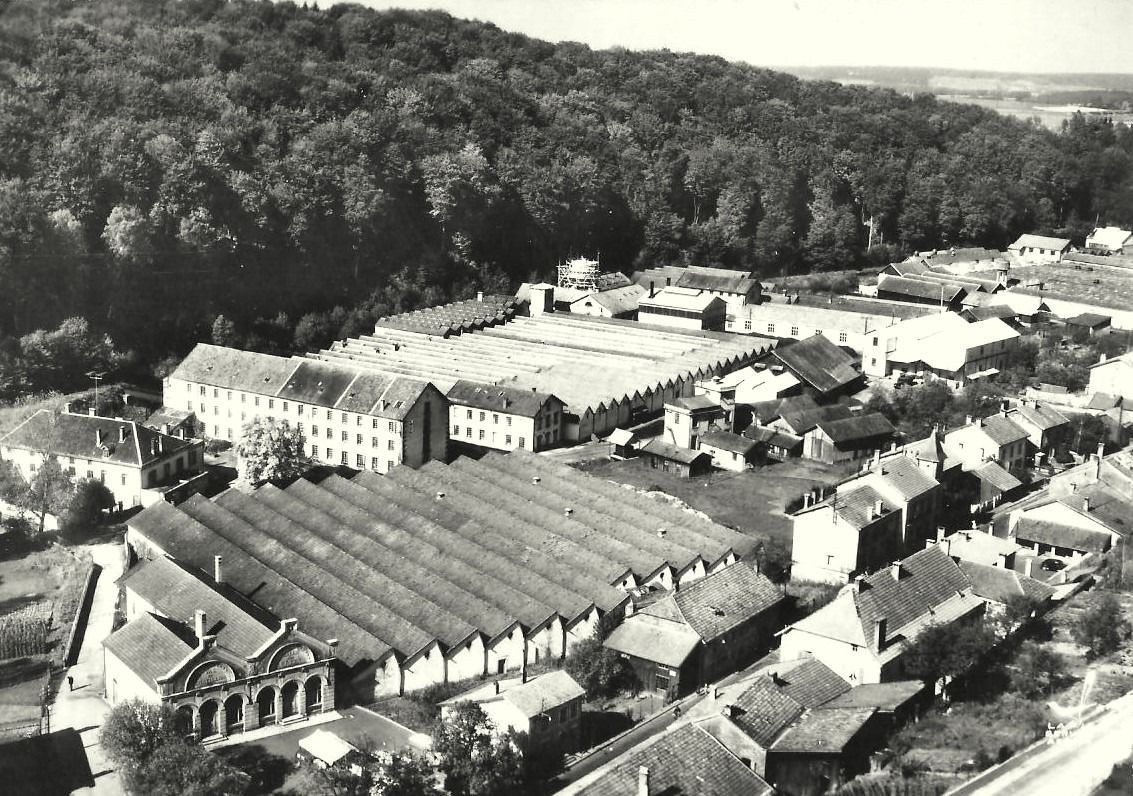Vue aérienne des usines et de la salle des fêtes